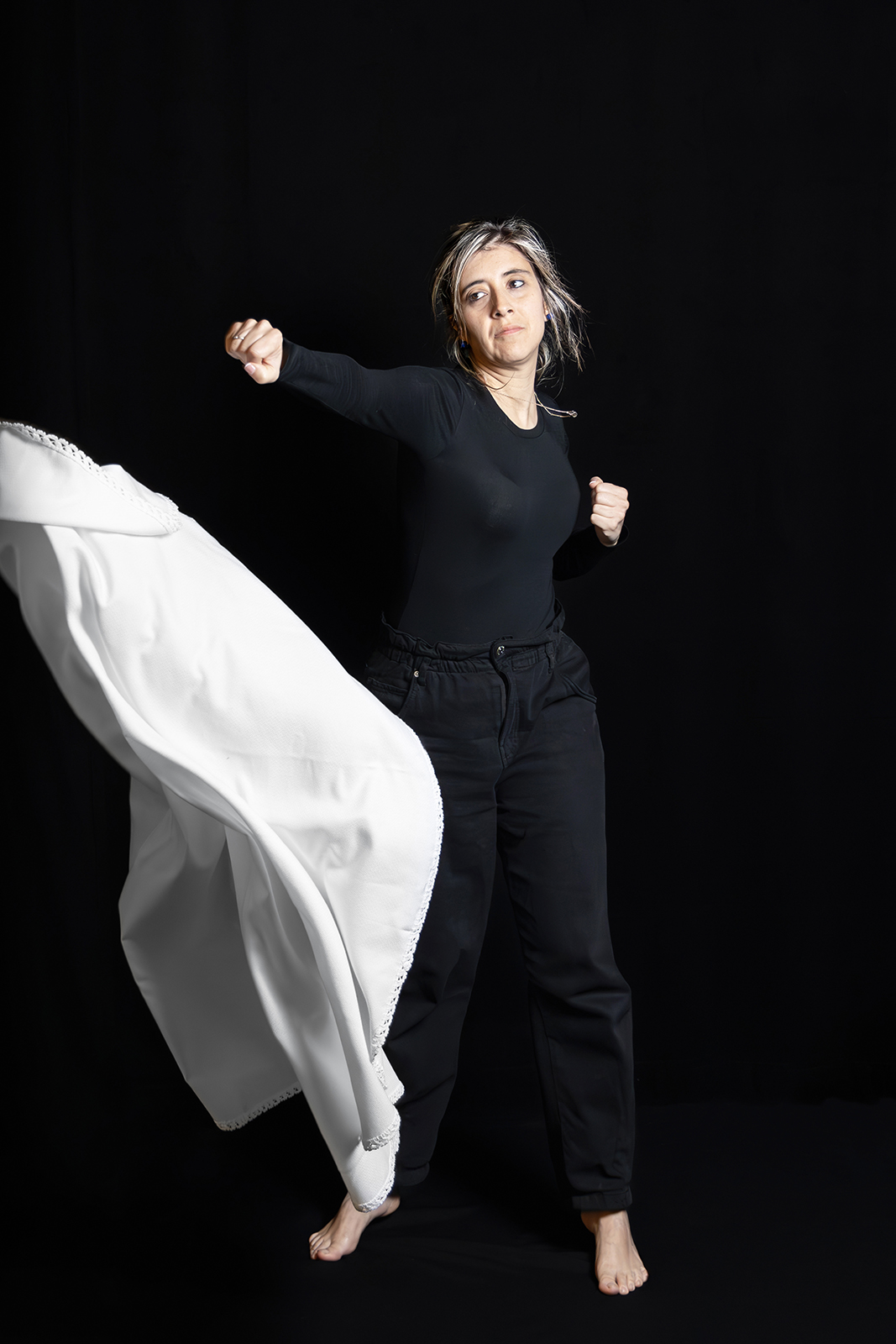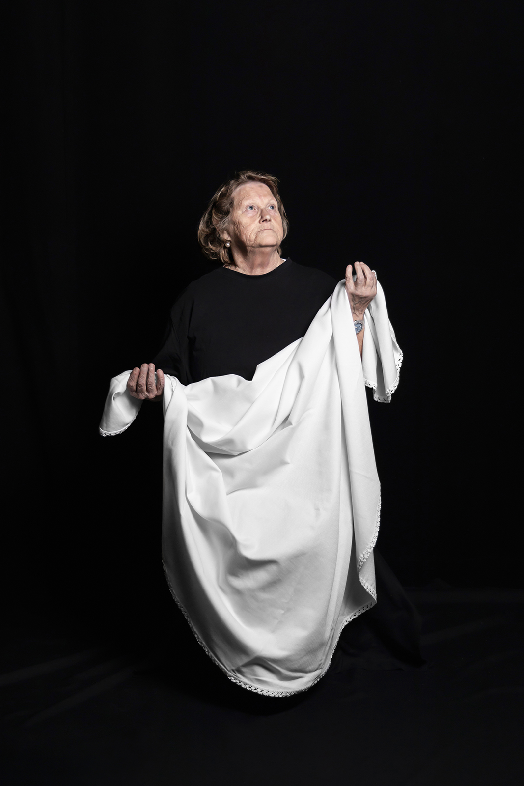 Inspirada conceptualment en “Faena” d’Elsa Casanovas i en l’obra de Pina Bausch, vaig desenvolupar una investigació sobre el gest i la transformació simbòlica d’un únic element per construir un retrat col·lectiu que reflexiona sobre els rols femenins: des de l’opressió fins a l’autodeterminació. Les fotografies mostren retrats individuals de dones vestides de negre sobre fons negre. Només destaca una estovalla blanca, un element domèstic que ens situa en l’espai on històricament s’ha construït la condició de ser dona. Aquesta estovalla es transforma a través del gest: pot representar la dona violentada, la dona sexualitzada, la dona que cuina fins a la dona que es desprèn dels rols i s’allibera. Abans de la sessió, es va fer una selecció de gestos i cada participant en triava un per representar-lo. El cos esdevé territori simbòlic: pot parlar de domesticació, de violència, però també de força, consciència i determinació. Així, la sèrie proposa un recorregut visual que va des de la imposició fins a l’alliberament, i convida a repensar quins gestos repetim, quins heretem i quins decidim transformar.