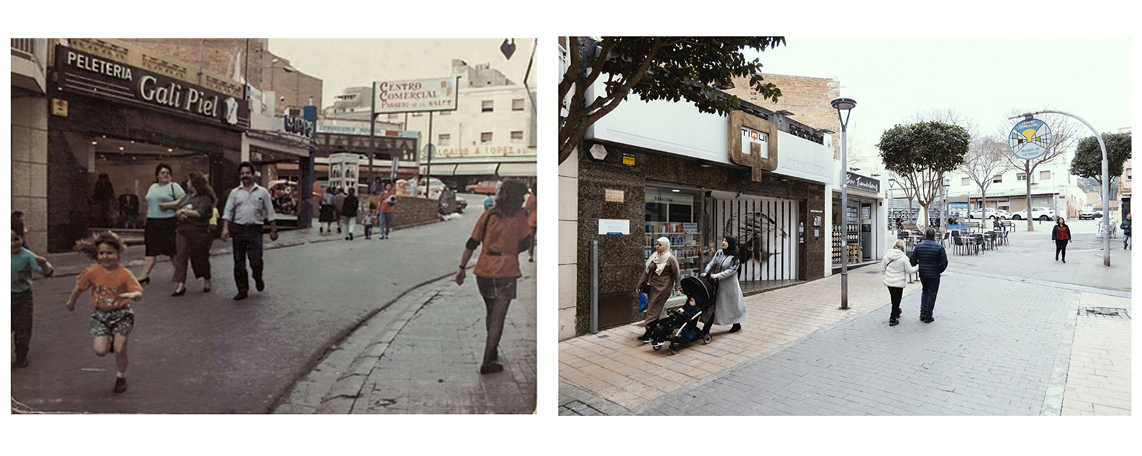 El Servei de mediació de Badalona vol recollir el paper dels veïns i veïnes del barri de la Salut en el territori, per homenatjar a totes les persones que l’han construït i transformat al llarg dels anys a partir d’una exposició fotogràfica que marqui l’abans i el després. A partir d’aquí plantejo una proposta participativa per recollir arxiu fotogràfic del barri i les veus de les persones que l’habiten. Crisàlide comunicació fa l’enregistrament sonor i juntament amb el servei de mediació fem una selecció dels punts històrics més rellevants per escollir una serie de fotografies que els representin. Imatges que torno a reproduir a dia d’avui, situant-me en un punt aproximat, amb objectiu de veure els canvis que han viscut al llarg dels anys.