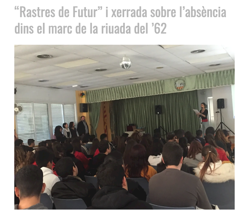 Projecte amb els alumnes de 4t d’ESO de l’IES Cavall Bernat de Terrassa sobre les persones desaparegudes per la riuada del 1962.
